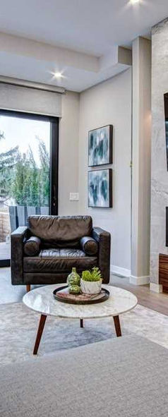 The design process for this Rathburn Rd project carefully considered the relationship between two homes on the lot. Each residence was designed to maximize privacy, natural light, and outdoor views while maintaining a cohesive overall aesthetic.